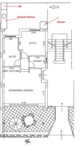 Back Terrace – Outside kitchen with sink, Shower and BBQ facilities – There is also a back entrance through a private gate.